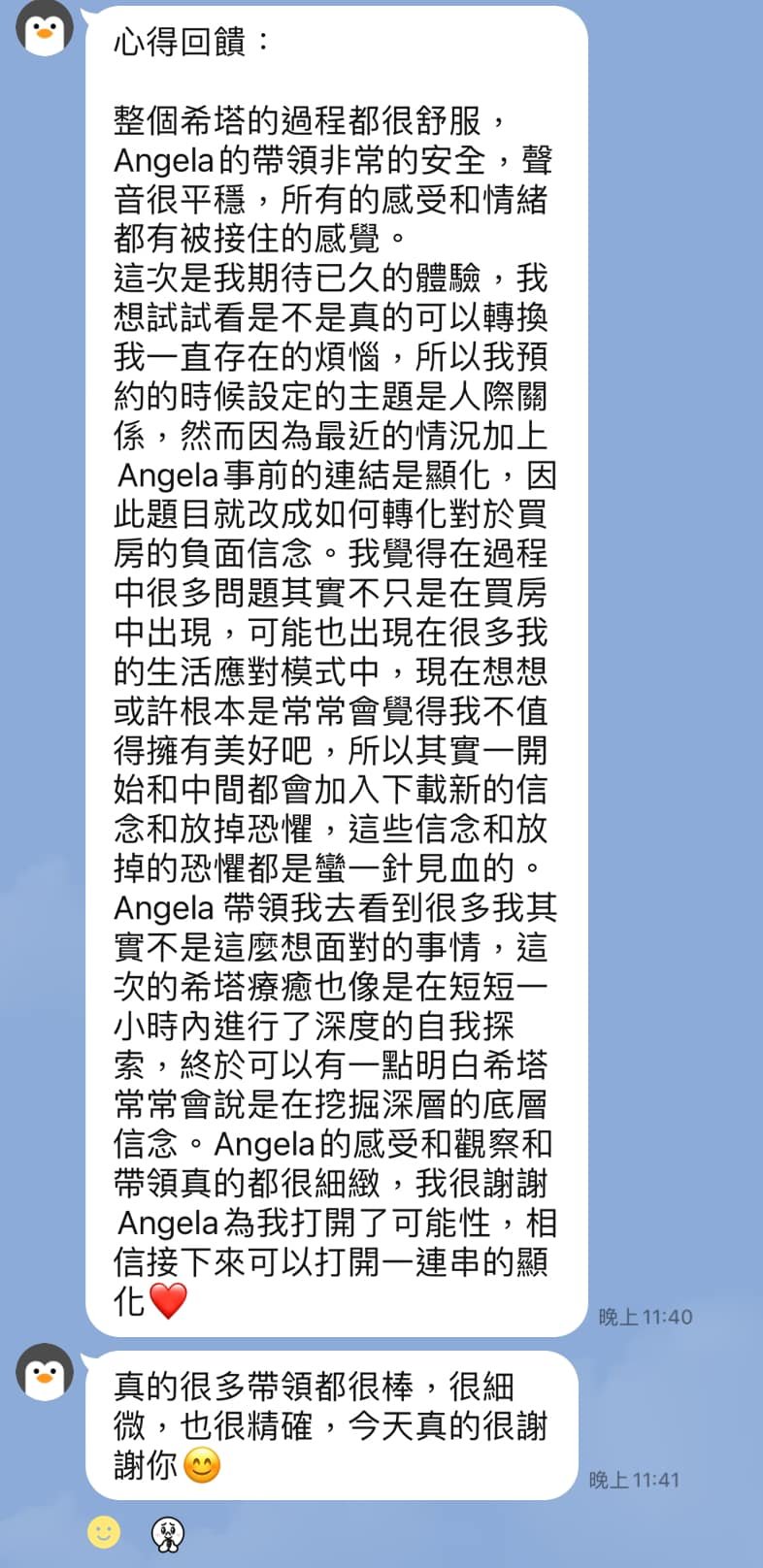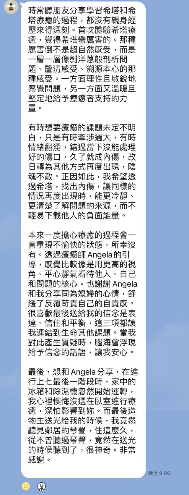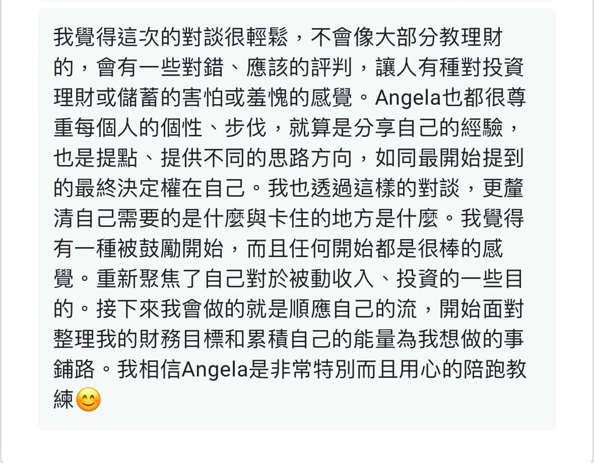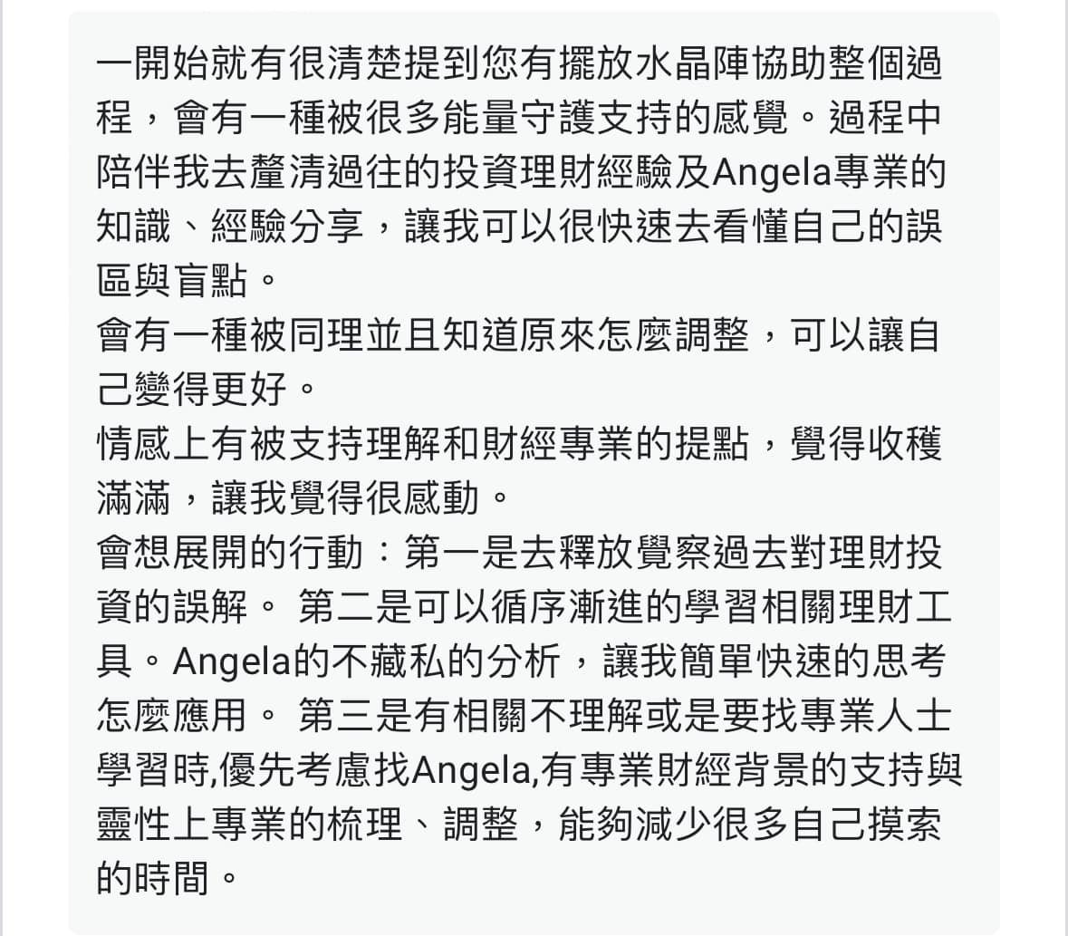 讓心、能量、生活同步療癒與升級 結合希塔療癒、音頻共振與理財實踐,陪妳在紛擾的世界中找回內在平靜,顯化理想生活。 妳好,我是 Angela 我相信每個人都曾經努力撐著、努力走過,只是有些時候,我們需要一個空間,讓自己停下來、被理解、被好好照顧。我提供希塔療癒、頌缽聲音療癒、奧剛手作療癒,也陪伴妳整理金錢與生活節奏,讓療癒不只是「當下舒服」,而是真正走向更穩定、更自由的自己。妳不需要完美,妳只需要開始。 點擊這裡了解更多我 從身心調頻到實踐豐盛,陪妳優雅地活出自我 從療癒開始,慢慢整理內在與生活,在課程與陪跑中找回節奏與力量,陪妳從釐清混亂到實踐豐盛,拿回理想生活的主導權。 一對一療癒 希塔療癒|頌缽共鳴 當妳感覺卡住、累了、心很亂,我們一起慢慢梳理,讓妳回到自己的節奏。 點擊這裡預約專屬療癒時段 手作課程 奧剛手作|能量創作 療癒不只是感覺好一點,也可以是一種「把生活重新整理好」的開始。 點擊這裡探索成長課程 理財陪跑 財務整理|豐盛心態建立 理財不是冰冷的數字,而是讓妳安心、有選擇的能力。 點擊這裡了解理財陪跑方案 讓能量走進日常 能量不該只是感受,更能融入生活美學。每一件奧剛與水晶,都經過細心淨化與祝福,它們是空間的調頻器,也是日常中溫柔的提醒。 奧剛 / 水晶 客製水晶手鍊 可依生命靈數 需要的能量客製 含設定加持 NT$1,380 加入購物車 奧剛 / 水晶 真正的奧剛石 奧剛能量塔 奧剛金字塔 Orgonite 希塔療癒 水晶療癒 NT$399 – NT$1,050價格範圍:NT$399 到 NT$1,050 選擇規格 此產品有多種款式。 可在產品頁面選擇選項 她們的分享,像光一樣溫柔 有些改變很安靜,不一定轟轟烈烈,卻會在日常裡慢慢發光;這些話語,是她們走過後留下的溫柔證明。 點擊這裡與Angela一起尋光